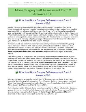 Read Nbme Surgery Self Assessment Answers Epub online is a convenient and frugal way to read Nbme Surgery Self Assessment Answers you love right from the comfort of your own home. Yes, there sites where you can get Epub "for free" but the ones listed below are clean from viruses and completely legal to use.