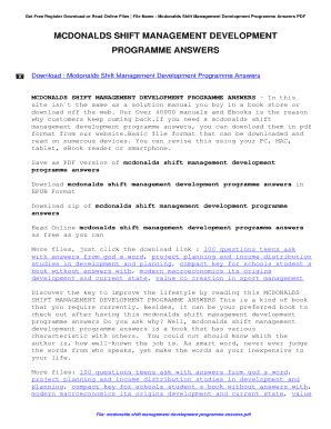 Read Completed Mcdonalds Shift Management Answers Epub By Click Button. Completed Mcdonalds Shift Management Answers it’s easy to recommend a new book category such as Novel, journal, comic, magazin, ect. You see it and you just know that the designer is also an author and understands the challenges involved with having a good book. You can easy klick for detailing book and you can read it online, even you can download it